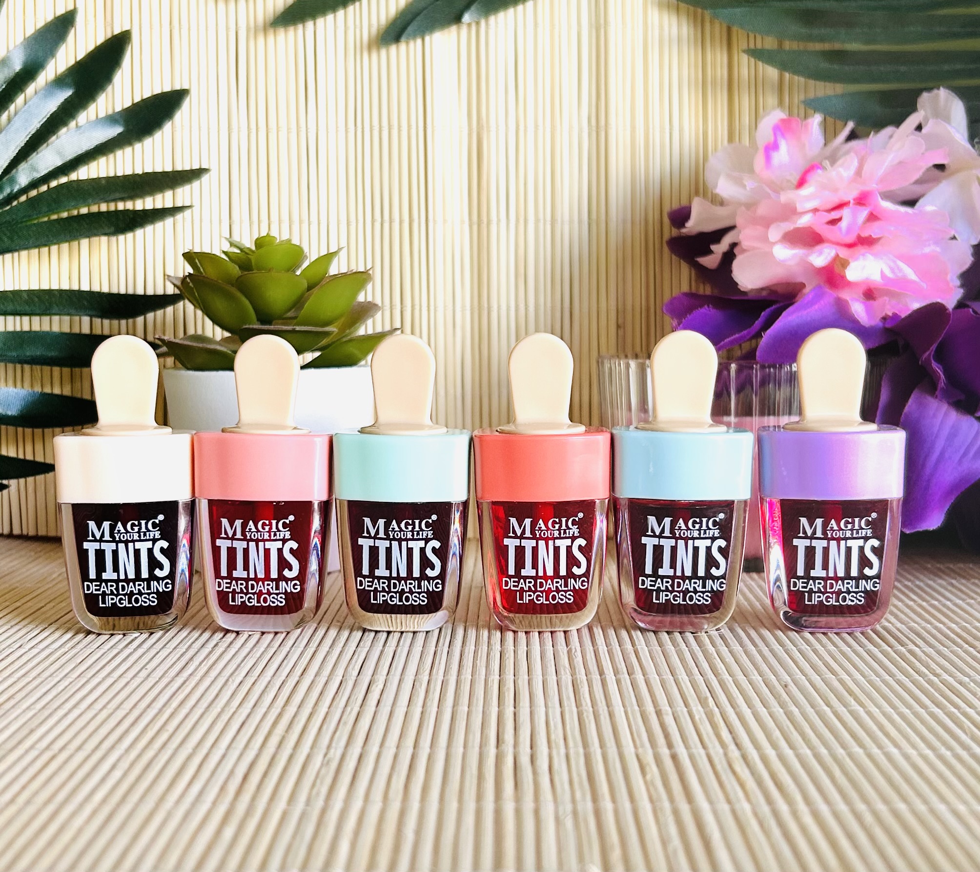 Tinta mágica para labios y colorete. Larga, duración, color intenso y nada pegajoso, textura súper ligera, disponible en seis tonos.